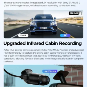 Crystal Clear 2K Dual Recording – Capture sharp and detailed footage with 2K resolution on both the front and rear cameras, ensuring reliable evidence in case of accidents or disputes.