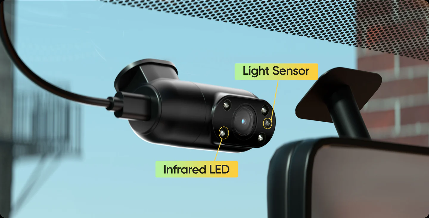 Equipped with a Sony STARVIS IMX307 sensor and four IR LEDs, the cabin camera delivers sharp black-and-white recordings in low-light and nighttime conditions.