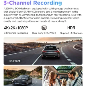 The A229 Pro’s 4K front camera, powered by a Sony STARVIS 2 sensor, records ultra-clear footage with exceptional detail, ensuring you never miss important moments on the road.