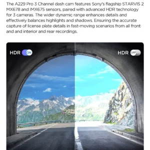 With 3-channel HDR technology, the A229 Pro records balanced and detailed footage from every angle, making it easy to identify license plates day or night.