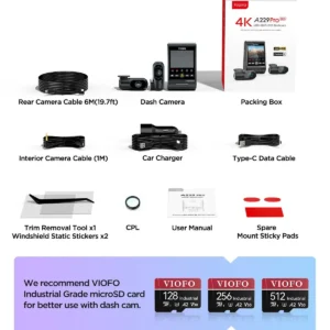Protect every journey with the VIOFO A229 Pro 4K Dash Cam featuring Sony STARVIS 2 sensors, built-in GPS, and ultra-fast WiFi. Available in 2CH (Front + Rear) and 3CH (Front + Rear + Interior) variants, it delivers complete coverage, superior night vision, and reliable parking surveillance for total peace of mind.